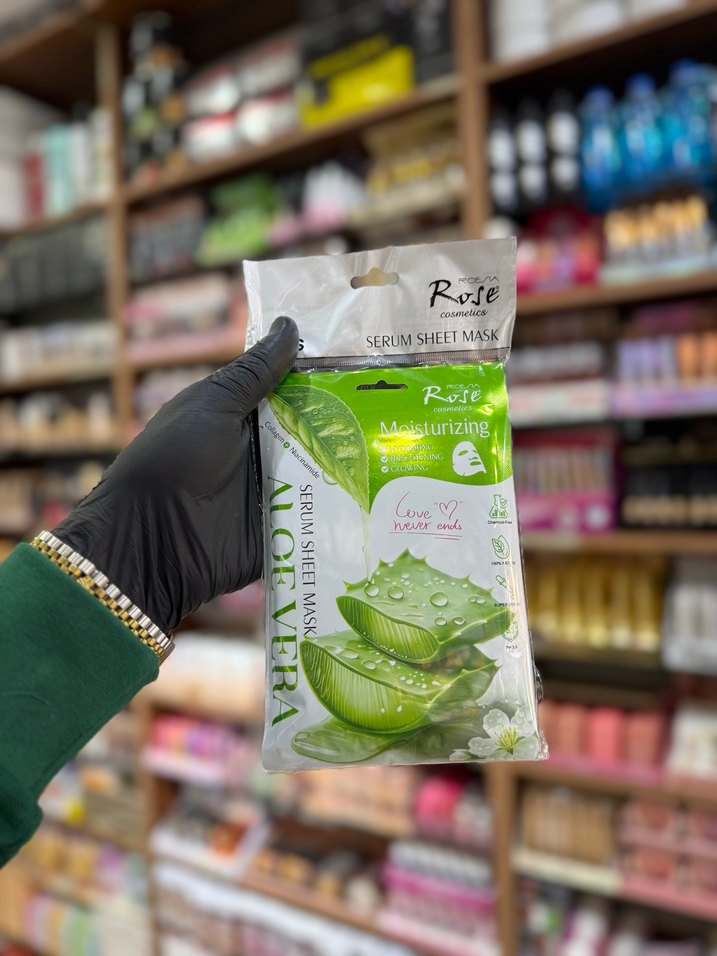 Rose Aloe Vera serumlu yaprak maske, aloe vera özü ile nemlendirici ve yatıştırıcı etki sağlar. Cildi nemlendirir ve canlandırır.