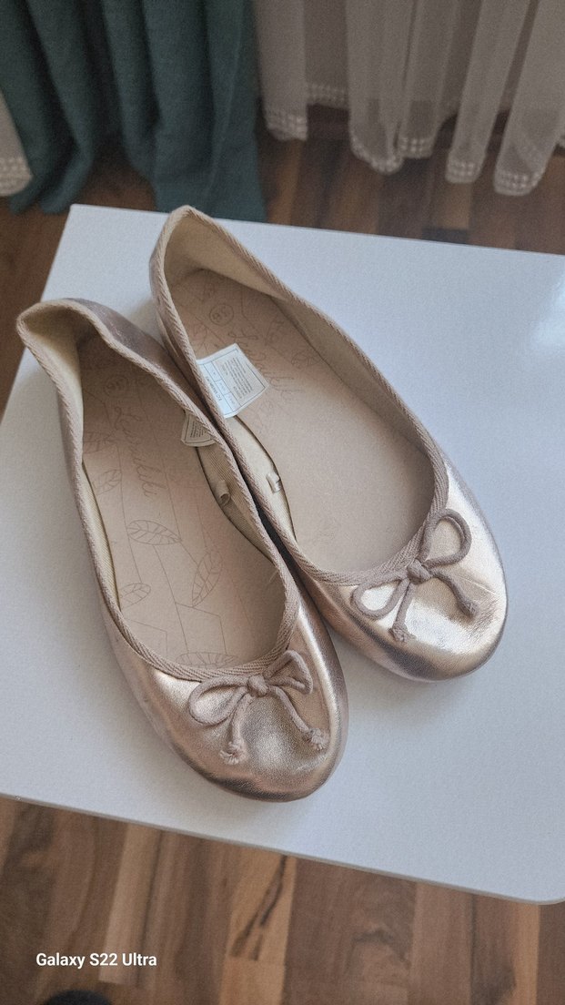 Rose Gold hiç giyilmemiş babet. Yumuşak kauçuk malzemeden yapılmış, klasik bohem tarzda, pastel tonlarda ve desensiz.