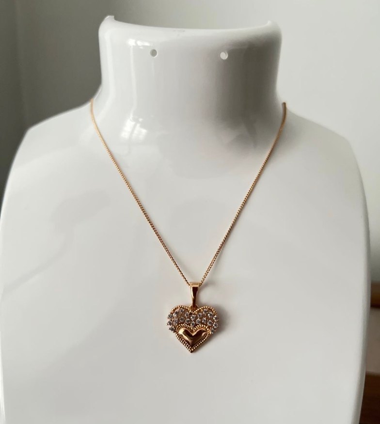 Rose Gold, Rodyum Kaplama Kalp Detaylı Altın Kolye