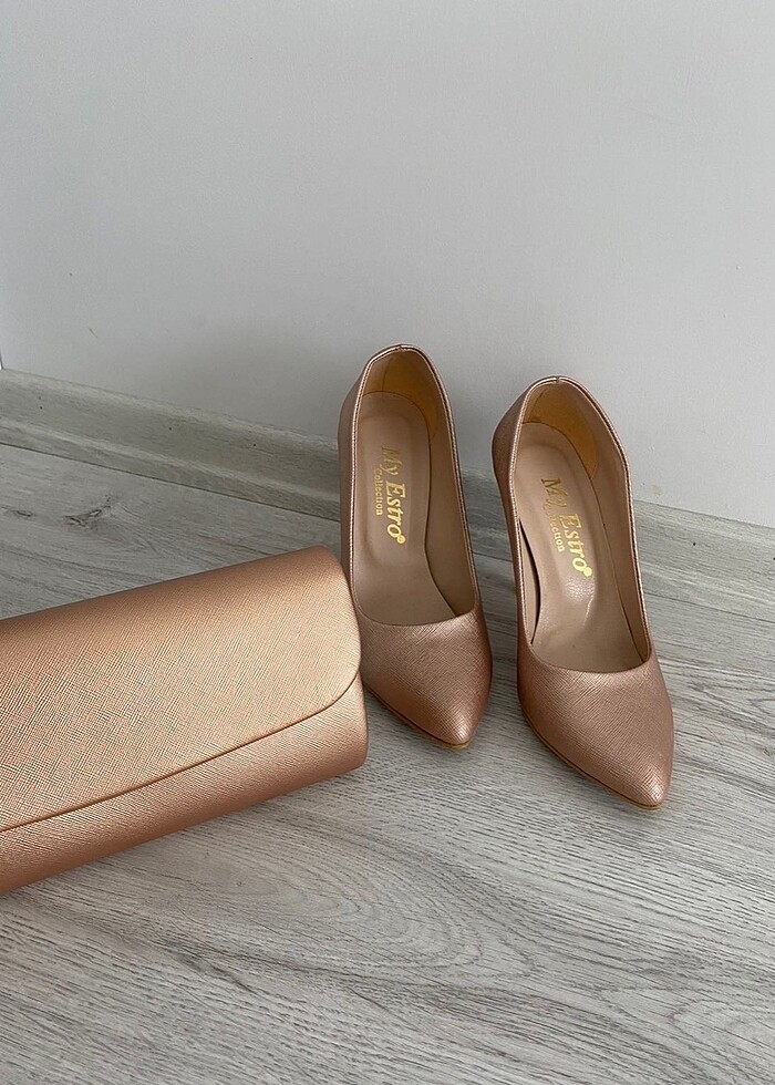 Rose gold topuklu ve portföy
