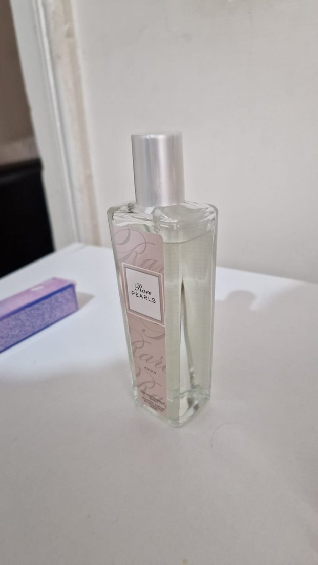 Rose Pearls kadın parfümü, şeffaf dikdörtgen şişede ve gümüş kapaklıdır. Nazik çiçeksi bir koku sunar.