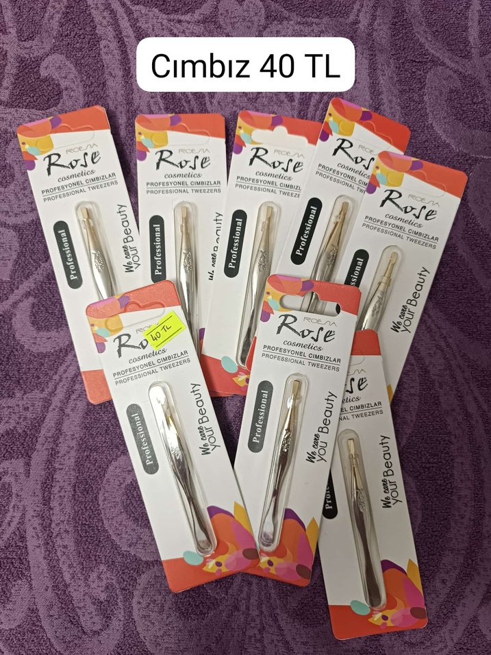 Rose markalı, çeşitli profesyonel cımbızlar, canlı renkli ambalajda, adet fiyatı 40 TL. ✂️