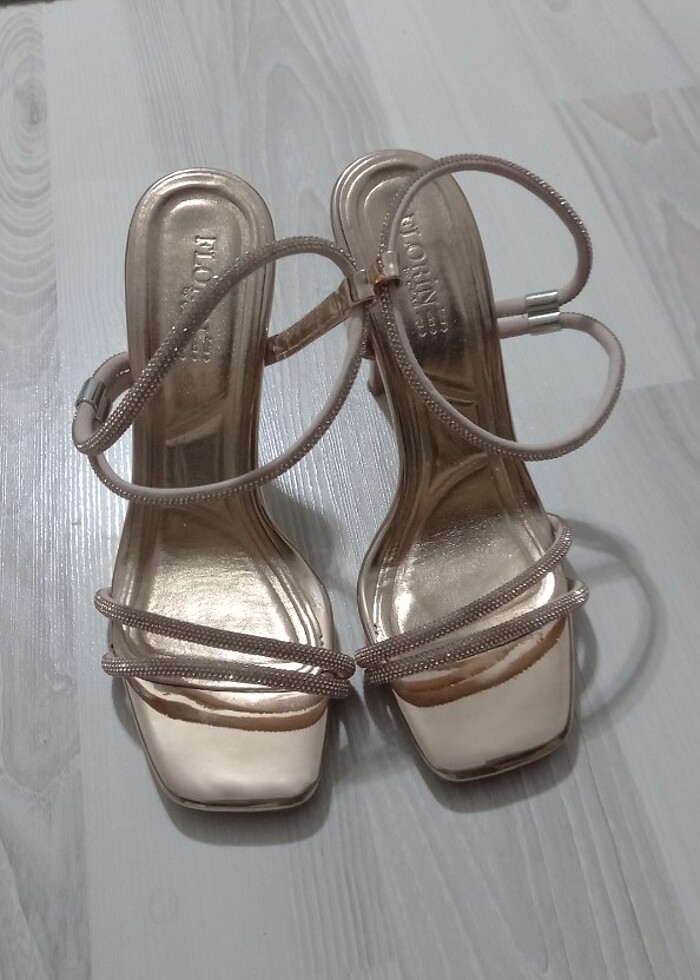 37 numara, rose topuklu ayakkabı. Bilek kısmı lastikli ayarlanabilir. çok rahat ve şık. Birkaç kez kullanıldı gayet iyi durumda