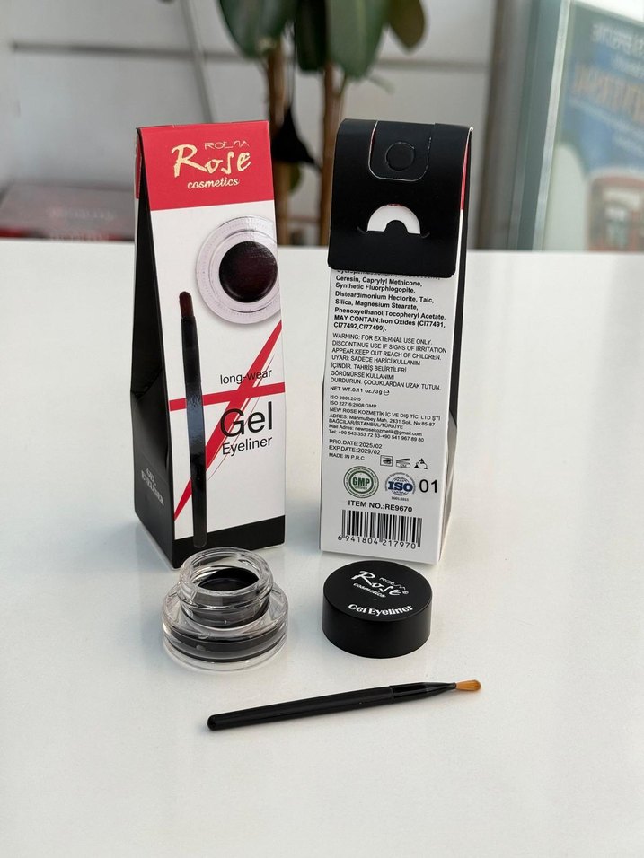 Rosie siyah jel eyeliner, ince fırçasıyla hassas uygulama sağlar. Uzun süre kalıcı, yoğun renk ile gözlerinizi belirginleştirir.