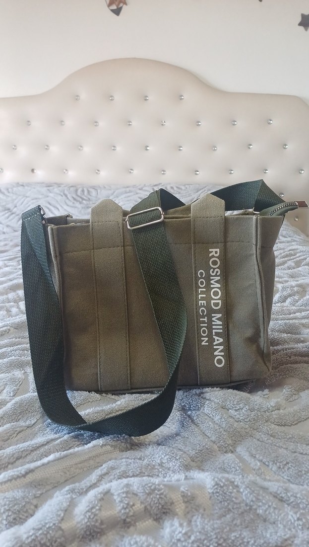 ROSMOD MILANO fermuarlı kadın çanta, sentetik kumaştan üretilmiş, haki renk ve baskılı detaylara sahip. Trendy sokak stili ve ayarlanabilir sağlam askı ile günlük kullanıma uygun. 1 kez kullanildi yenidir