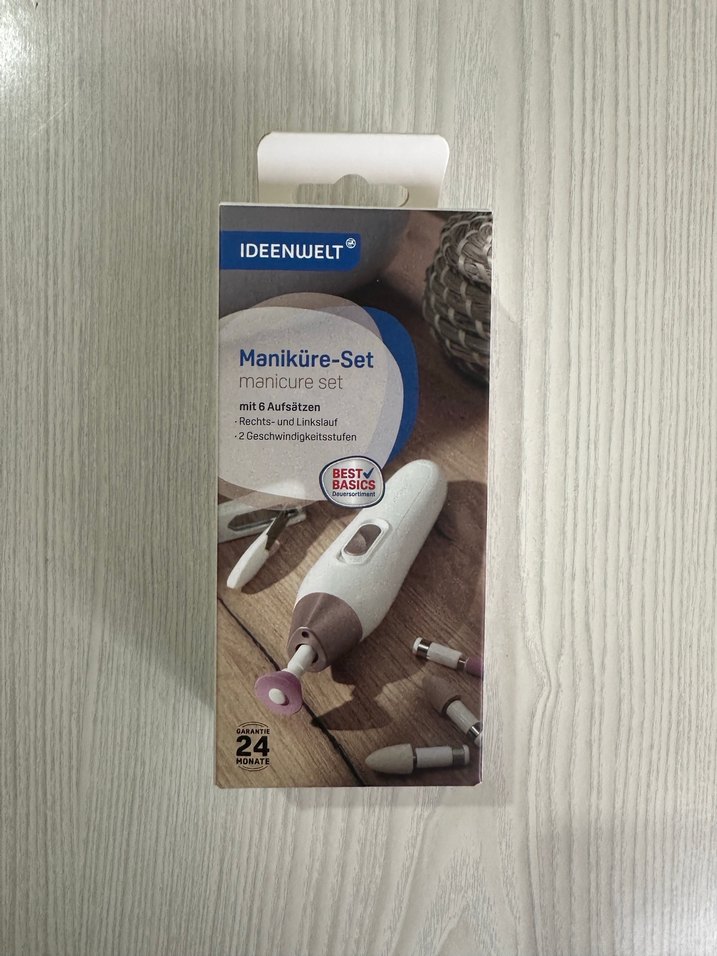 Hediye gelmiş hiç kullanılmamıştır. Görsellemek için paketinden çıkartılmıştır, kesesi daha evvel hiç açılmamıştır. İçerisinden 6 farklı başlık, kütikül itici, tırnak makası, kendi pili ve evrakları çıkmaktadır.