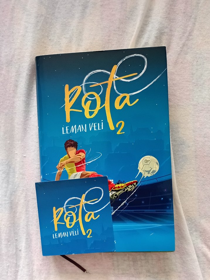 Leman Veli'nin Rota 2 adlı romanı, hareketli ve futbol temalı kapağıyla dikkat çekiyor. ⚽ kitapda hiçbir hasar yoktur sadece bi kaç çümlenin altı çizili