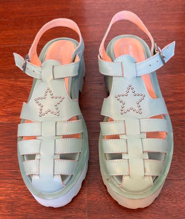 Pelin’in Ayakkabıları 37 numara Rotem kadın deri sandalet, nane rengi, tertemiz…