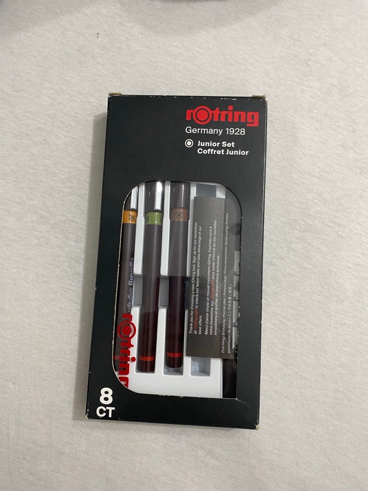 Rotring rapido seti mimarlık projeleri için çizim için çok güzel bir set. İçerisinde sadece uçlu kalemi bulunmamakta. Rapido kalemler ve mürekkepleri hiç kullanılmadı.