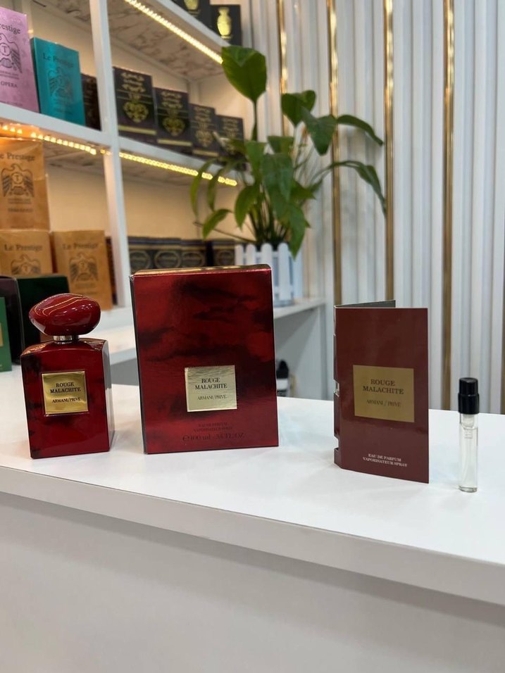 Rouge Malachite kadın parfüm seti kırmızı şişe, kutu, kitapçık ve küçük numune şişesinden oluşur. Zarif tasarımı kokusuyla uyumludur.