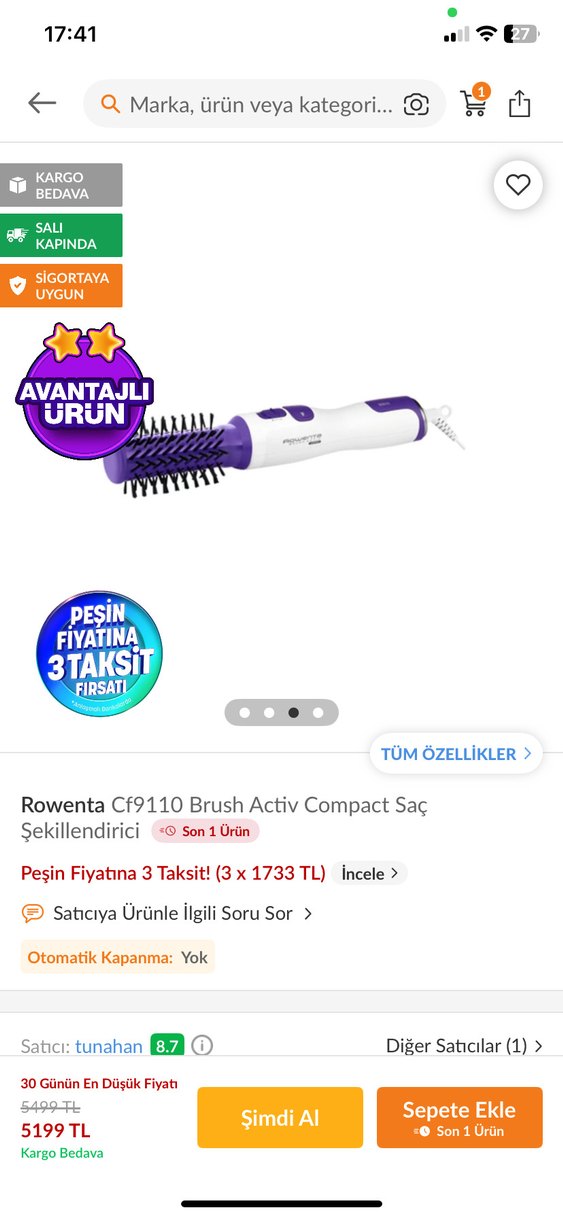 Rowenta Cf9110 Brush Activ Compact saç şekillendirici, mor renkte ve otomatik kapanma özelliği yoktur. Saç şekillendirmede kolay kullanım sağlar.