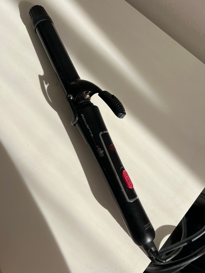Rowenta marka siyah saç maşası, saç şekillendirme için kelepçeli, kontrol düğmeli ve kablolu tasarıma sahiptir. Saçlarda bukle ve dalga oluşturmak için uygundur. ✨