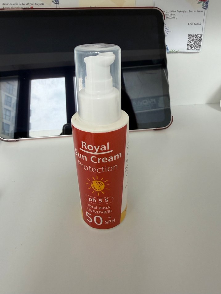 Royal Güneş Kremi, pH 5.5 dengesi ile SPF 50 koruma sağlar ve UVA/UVB ışınlarına karşı tam blokaj sunar. Etkili güneş koruması için uygundur. ☀️