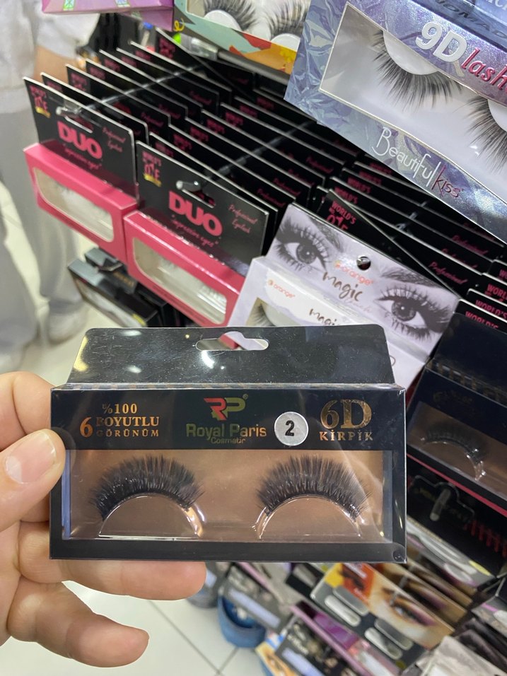 Royal Paris 6D kıvrık, koyu altın renkli takma kirpik, hacimli ve canlı bir görünüm sağlar. Göz görünümünü arttırmak için uygundur.