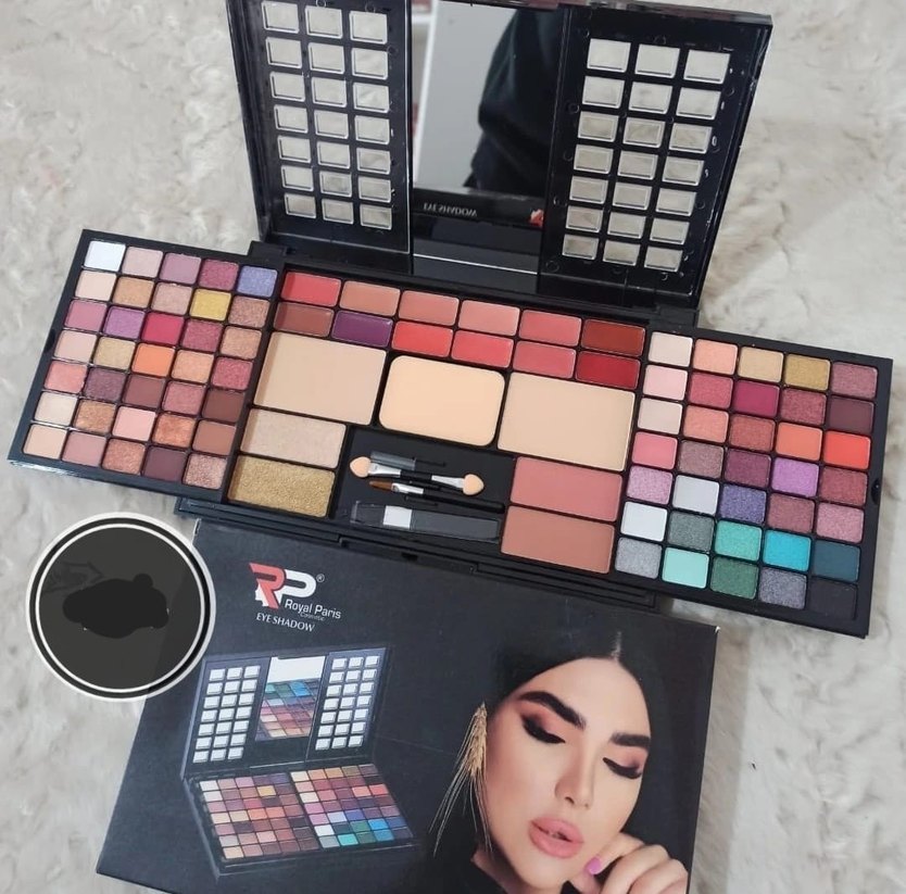 Royal Paris göz farı paleti, canlı koyu ve çok renkli tonlar, dahili ayna ve aplikatörlerle birlikte sunuluyor.