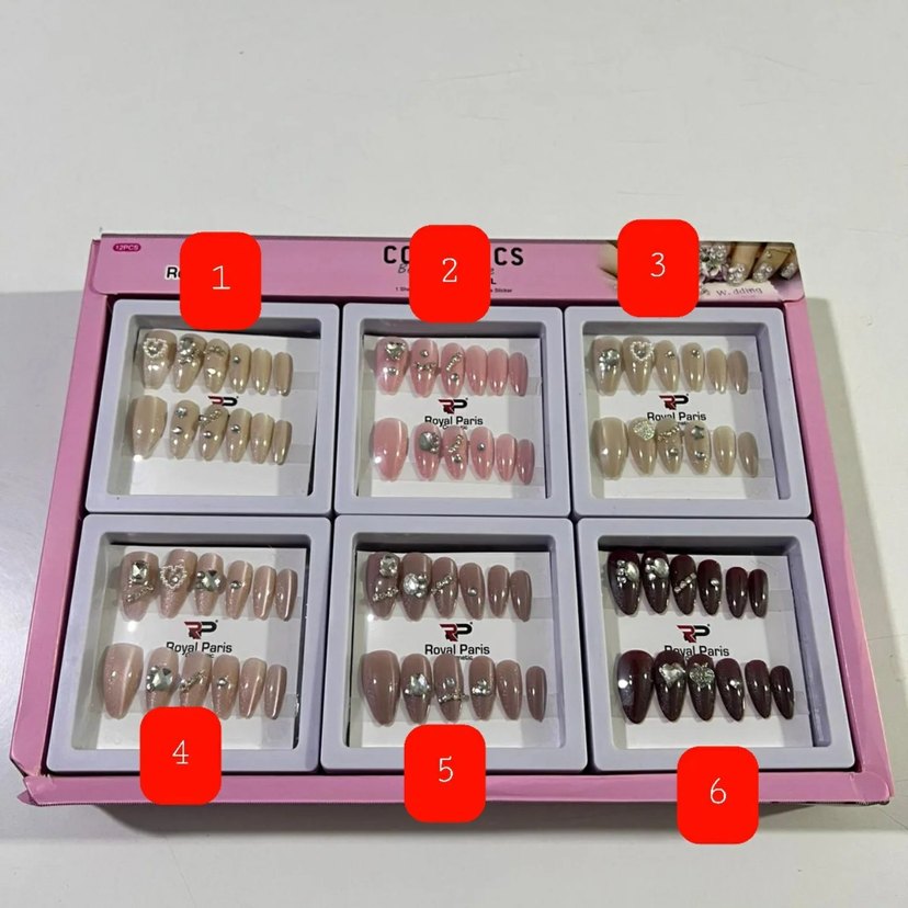 Royal Paris çok renkli, ışıklı takma tırnak seti. Nude ve canlı tonlar, parlak detaylarla zenginleştirilmiş. ✨