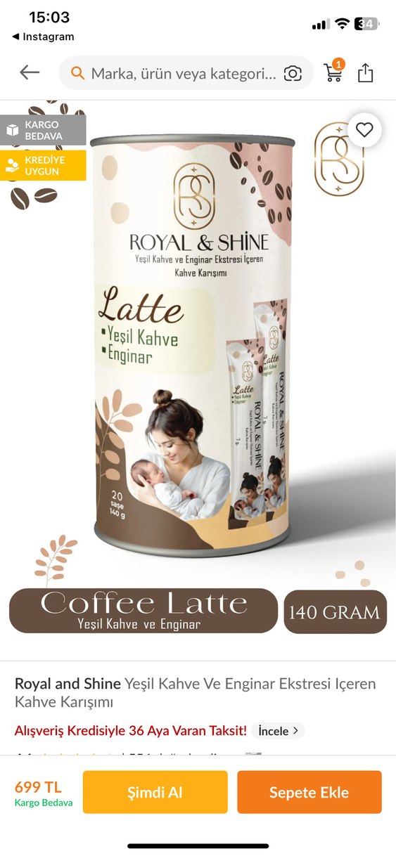 Burcu göçmenin kahvesi Süt arttırıcı kahve diye aldım fakat benim bebeğim emmediği için kullanamadım 2 adet kullandım sadece o yüzden fiyatını uygun tutucam içinde 18 adet var güncel fiyatı resimde mevcuttur Royal & Shine Latte kahve karışımı, yeşil kahve ve enginar ekstresi içerir.