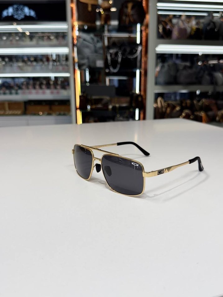 Kadınlar için parlak altın metalik çerçeveye sahip, koyu dikdörtgen lensli modern klasik tarzda gözlükler. ️