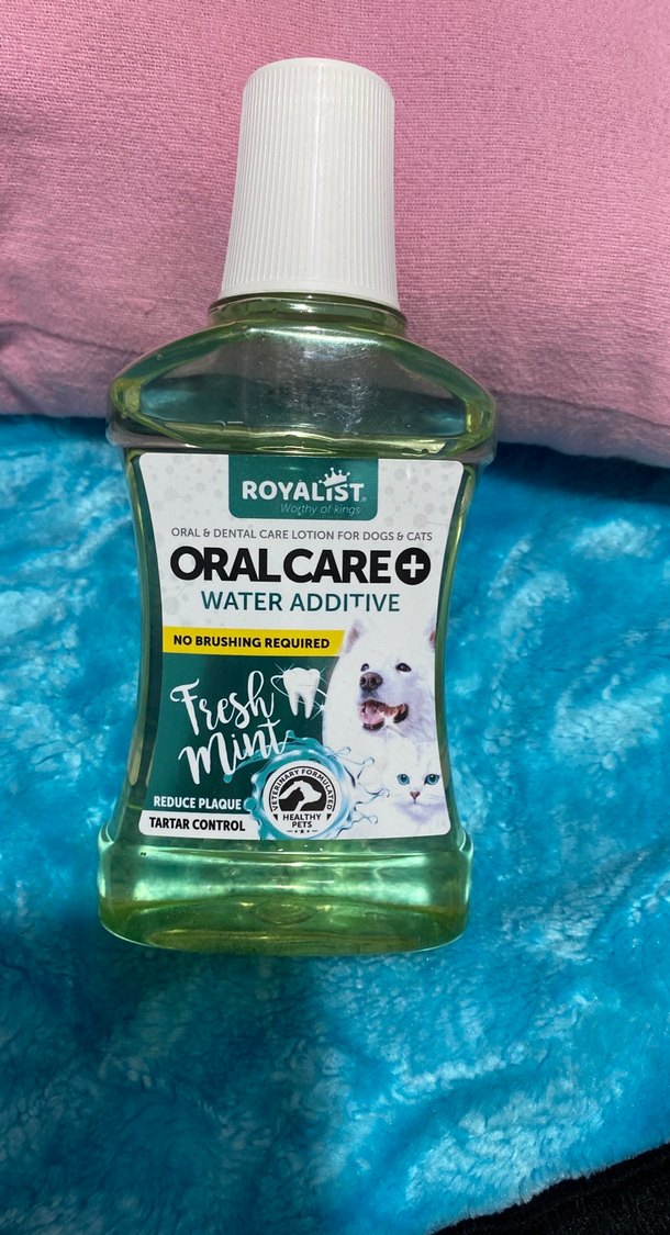 Royalist OralCare+ köpek ve kediler için tartar kontrolü ve plak azaltıcı nane aromalı ağız bakım suyu. Fırçalamaya gerek yok.
