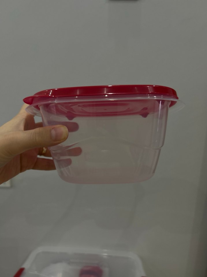 Kırmızı kapaklı, şeffaf plastik saklama kabı, yiyecekleri saklamak için uygundur. Hafif ve kullanışlıdır. Mikrodalga, buzluk,bulaşık makinesine girebilir . Bpa içeremez . Orijinaldir