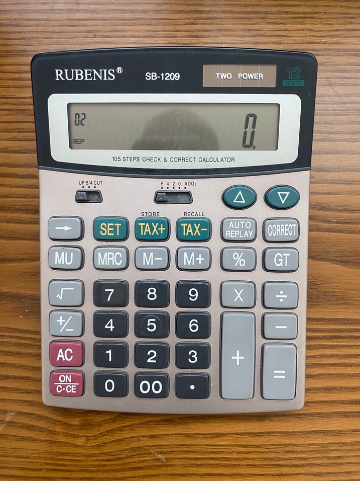 Rubenis SB-1209 hesap makinesi 12 haneli ve çift güç kaynağına sahiptir. Vergi hesaplama, hafıza ve yüzde işlemleri içerir. Gri ve kahverengi tasarımıyla kullanımı kolay düğmeler sunar.