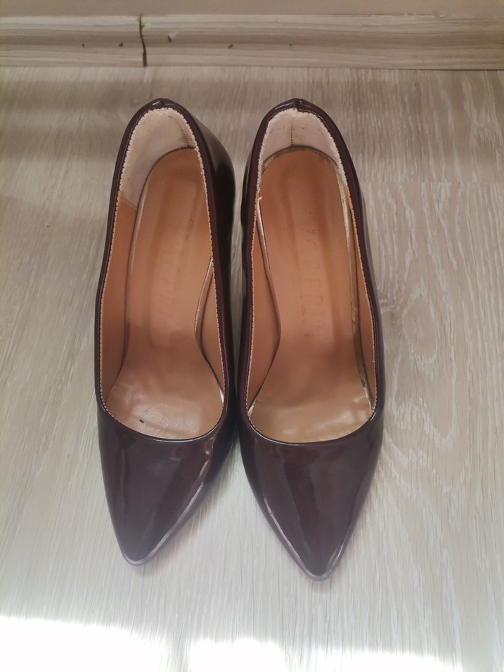 Sol tekinde çizik var ve topuk çivi yerindeki plastik çıkmış onun dışında sıkıntı yok sadece evlerde giyildi dışarıda giyilmedi annemin ayağını sıktığı için satıyorum 10 cm topuk rengi rugan bordo