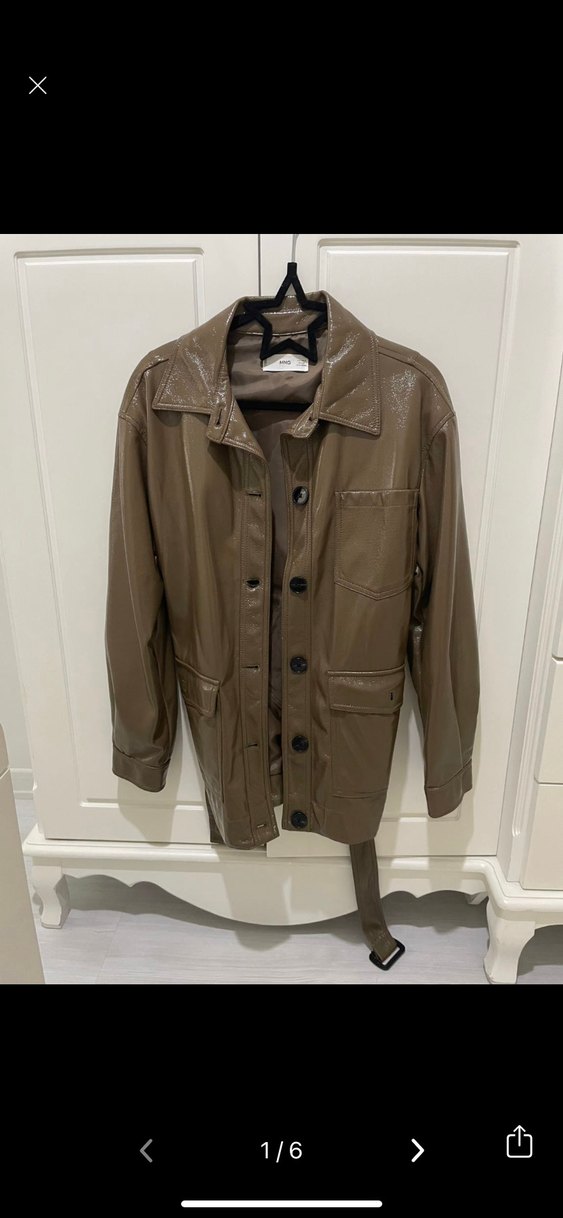 Rugan deri, düğmeli, normal midi uzunlukta, uzun kadın ceket. Günlük kullanıma uygun, Paris sokak modası tarzında.