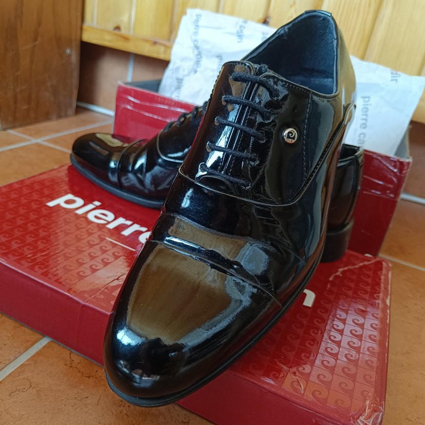 Orijinal Pierre Cardin Parlak siyah rugan erkek klasik ayakkabı. 41 numara. Şık tasarımı ile düğün davet gündüz gece kullanımına uygundur. Bağcıklı ve tarz bir görünüme sahiptir. Bir kez ve sadece bir kaç saat kullanılmış, yepyeni tertemizdir sorunsuzdur. kutusunda..