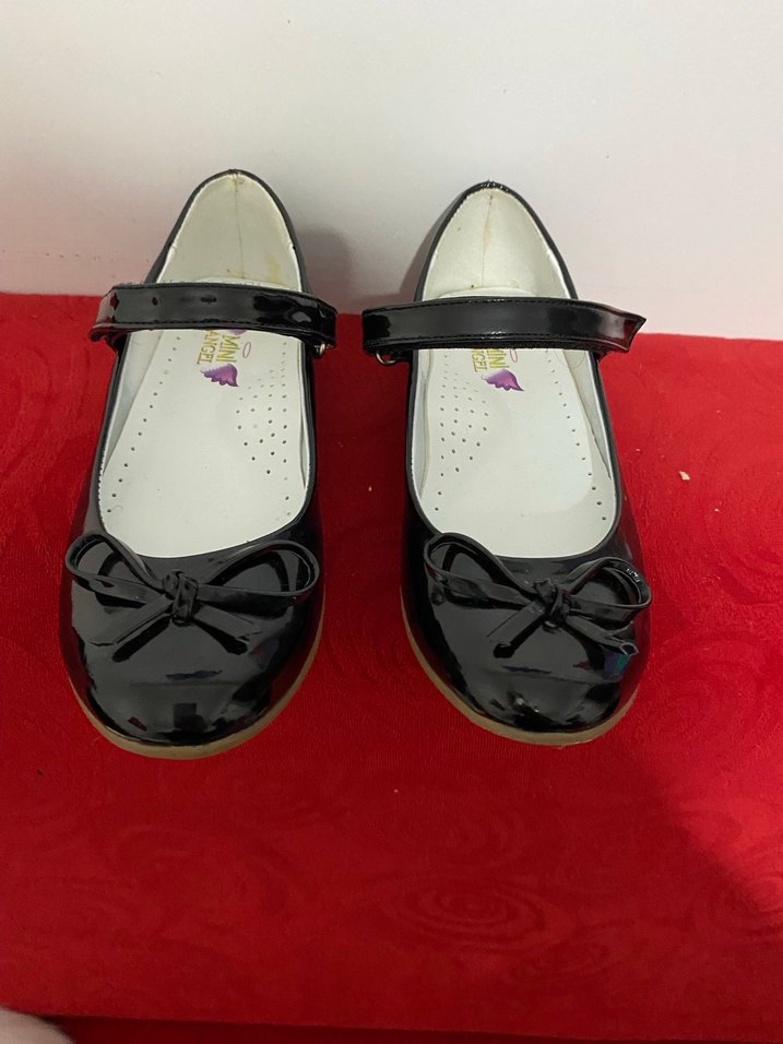 Kız çocukları için siyah rugan babet ayakkabılar, fiyonk detayı ve desenli iç tabanıyla klasik şıklığı gotik tarzla buluşturuyor. Bantlı tasarım sağlam tutuş sağlar.