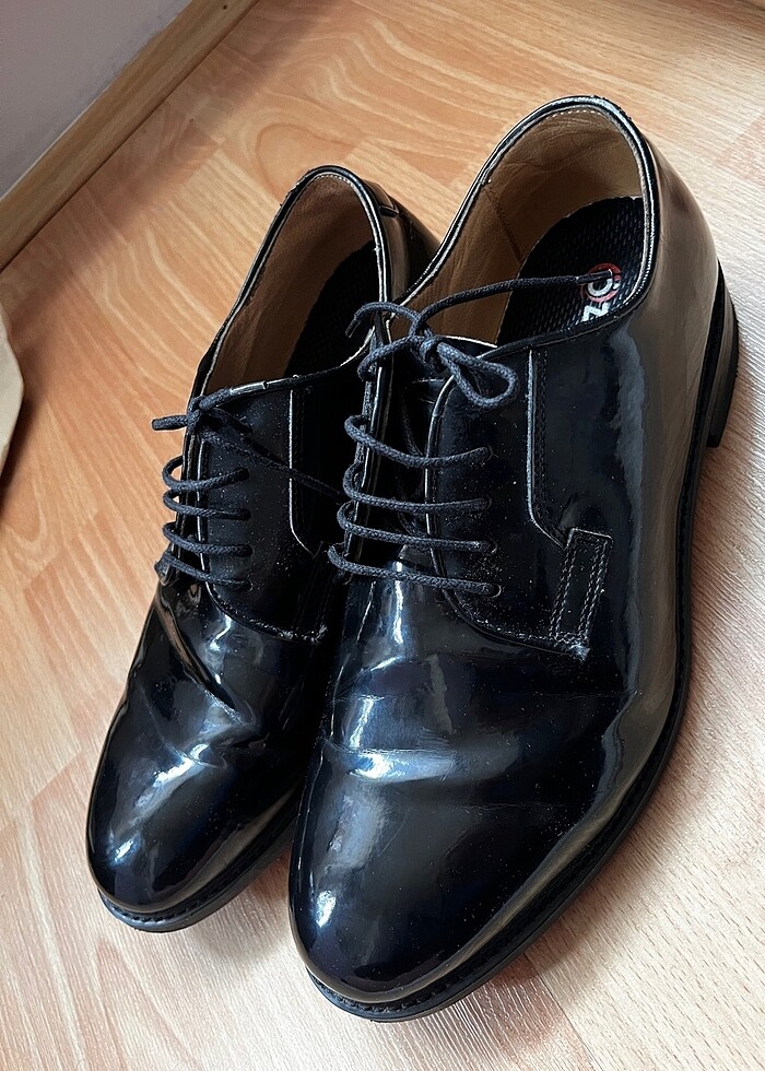 43 numara Bir kaç kez düğünde giyildi Ben silmediğim için tozuyla duruyor ayrıca Topuk kısmında pantolona sürttüğü için küçücük hasar var fiyata yansıtıldı