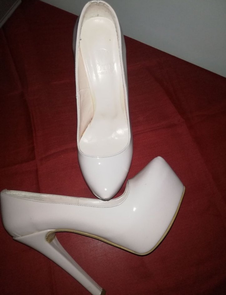Rugan platform topuklu ayakkabıları parlak yüzeye ve ince stiletto topuğa sahiptir. Düğünler için uygun cesur ve çağdaş bir tasarım sunar.