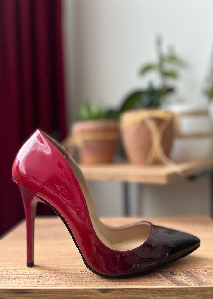 Rugan Stiletto 37 Numara Topuklu Ayakkabı Kırmızı &Siyah . Burun siyahtan başlayıp topukta kırmızıya geçiş yapan bir renkte . Nadir bir ürün . Çok az giyilmiş , çok şık bir topuklu ayakkabı. Hem casual hem klasik giyimde yer bulabilecek çok hoş bir ürün .