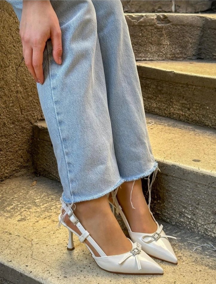 açık krem tokalı taş detaylı kadın ayakkabı. Günlük ,davet sokak stiline uygun şık bir seçim. 39 numara