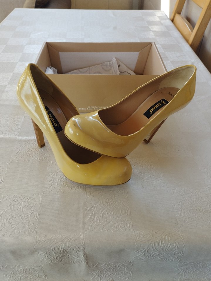 Rugan,stiletto topuklu ayakkabılar,uç kısımlarında hafif yıpranmalar var,38 numara