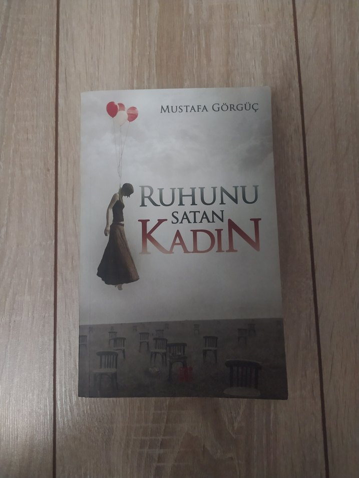 Mustafa Görgüç'ün "Ruhunu Satan Kadın" adlı romanı, derin duygusal ve psikolojik temaları işler. Kapakta kırmızı balonlar tutan bir kadın ve boş sandalyeler yer alır.