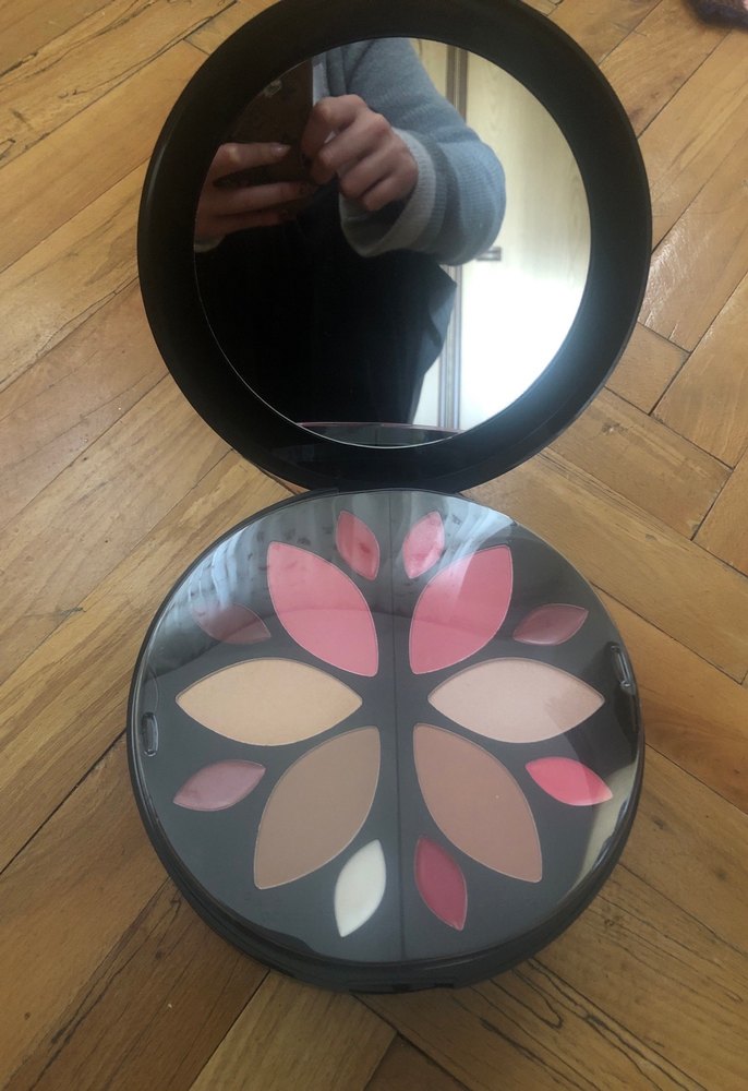 Canlı koyu pembe ve nötr far ruj ve allık paleti şık kutusuyla birlikte gönderilecektir hiç kullanılmadı