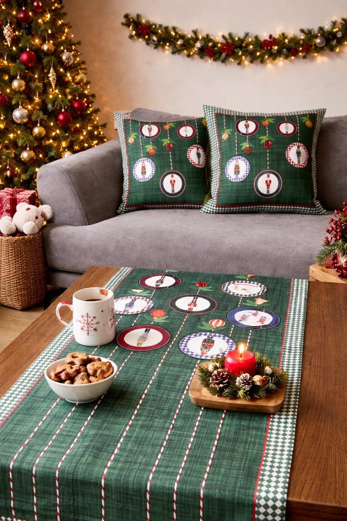 Yılbaşı için Runner,3D kalite dijital baskı kumaş ve dikiş.Runner Ölçü 134|48.Kırlent Kılıfı 45/45.Fiyata Runner +2ad.Kırlent Kılıfı verilmiştir.