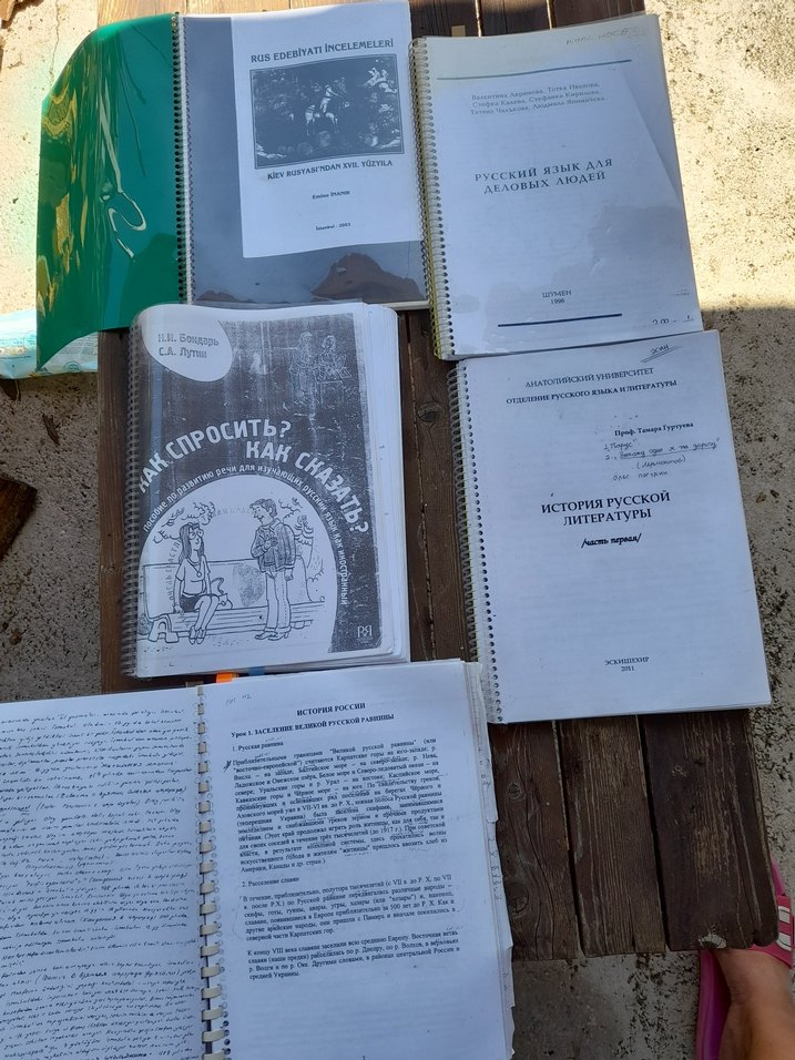 Rus dili ve edebiyatı üzerine kitaplar ve çalışma notlarından oluşan set, dil öğrenenler ve edebiyat öğrencileri için uygundur. fotokopi kitaplar karalamalar var istediğiniz kitap için ilan açılır fiyat sorun