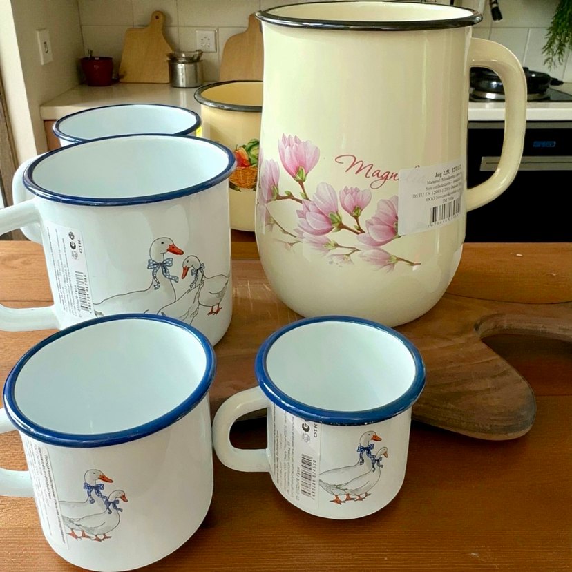– “Magnolia Sürahi” Rus üretimi büyük emaye sürahi Koleksiyonluk değeri ve zarif görünümüyle hem sofralarda hem mutfaklarda nostaljik bir dokunuş yaratır. 2,5 litrelik geniş hacmiyle; – Ayran, limonata, komposto ve meyve suyu gibi soğuk içeceklerin, – Bitki çayı ve diğer sıcak içeceklerin servisinde, – Ya da mutfakta rustik bir dekor objesi olarak kullanılabilir. Krem zemin üzerine işlenmiş Magnolia çiçek deseni, klasik emaye parlaklığıyla birleşerek zarif bir görünüm sunar. Dayanıklı çelik gövde ve çift kat emaye kaplama sayesinde uzun ömürlü, sağlıklı ve ısıya dayanıklıdır. Koleksiyonluk, nostaljik ve çok amaçlı bir parça. Hacim: 2,5 L Üretim: Rusya Desen: Magnolia ✨ Kullanım: İçecek servisi, sıcak/soğuk içecekler, dekoratif obje