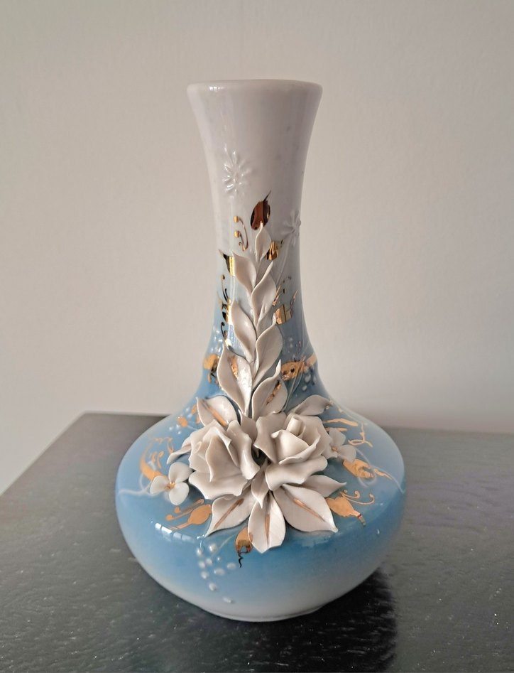 Altın süslemeli Rus Fenix vazonun yüksekliği 16 cm.dir. İki yaprağında atık vardır. Resimlerde gösterilmiştir.