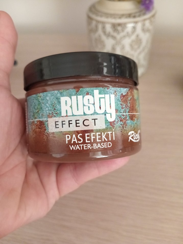 Rusty su bazlı toz, yüzeylerde parlak pas efekti yaratır. Uygulaması kolay ve dekoratiftir. ✨