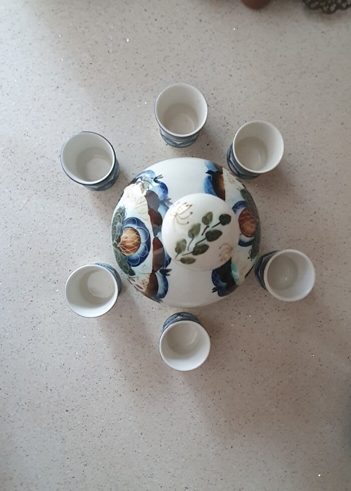 Rusya El Yapımı Seramik İçki Sürahi ve 6 Bardak