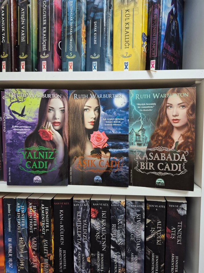 Ruth Warburton'un 'Yalnız Cadı', 'Aşık Cadı' ve 'Kasabada Bir Cadı' gibi cadı temalı romanlarından oluşan kitap seti.