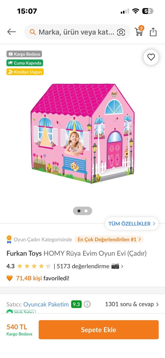 Rüya Evim Oyun Evi - Pembe oyun çadırı çubuklar kırık, tamir edilmeye çalışılabilir, internetten yenisi de alınabilir