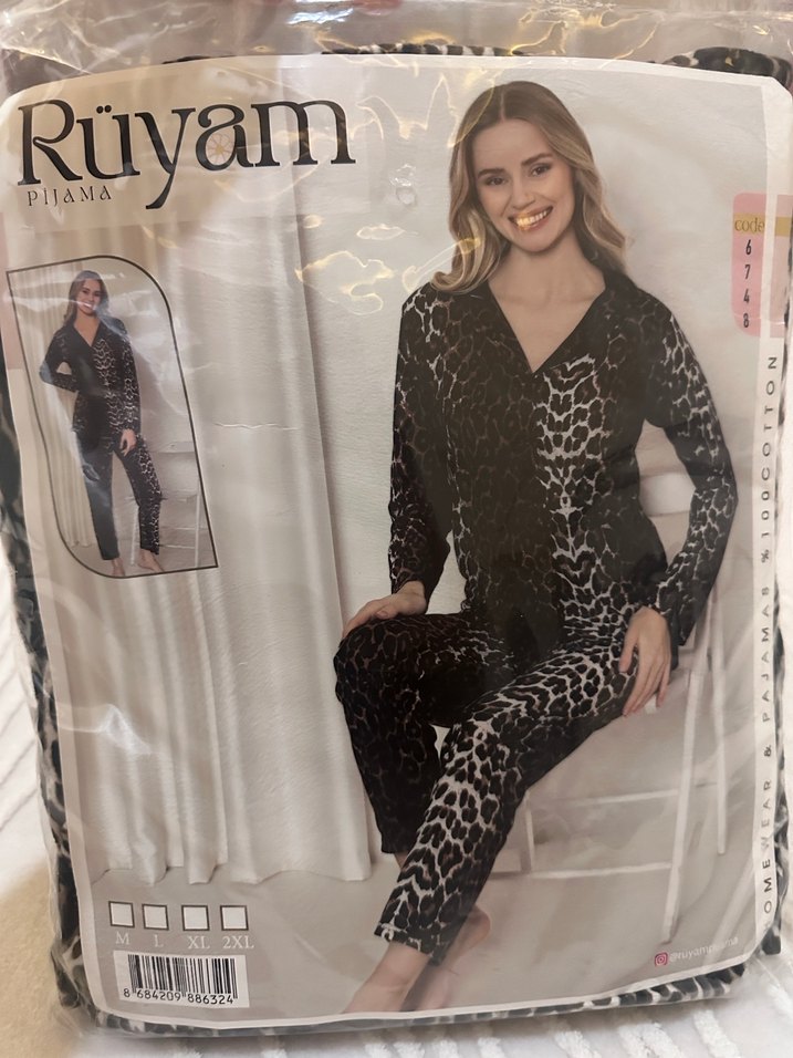 Rüyam markasının siyah zebra desenli kadın pijama takımı, uzun kollu ve bol kesimli, rahat ve modern bir tarz sunar. Süet kumaştır.