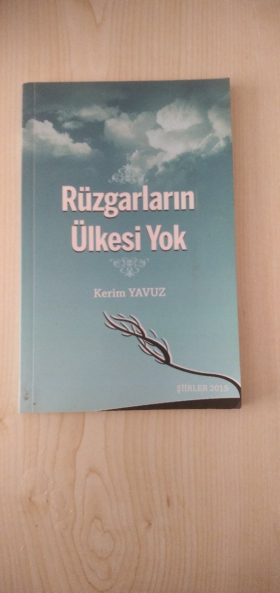 Kerim Yavuz'un 2015 yılında yayımlanan "Rüzgarların Ülkesi Yok" adlı şiir kitabı, sakin bir gökyüzü temalı kapağa sahiptir.
