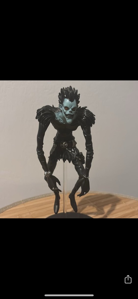 Karanlık siyah renkte, iskelet yüzlü ve sivri saçlı detaylı aksiyon figürü. Koleksiyoncular için uygun. Ryuk death note sağ yanağında siyahlık vardır üretim hatası veya özel bir parça olabilir internette farklı