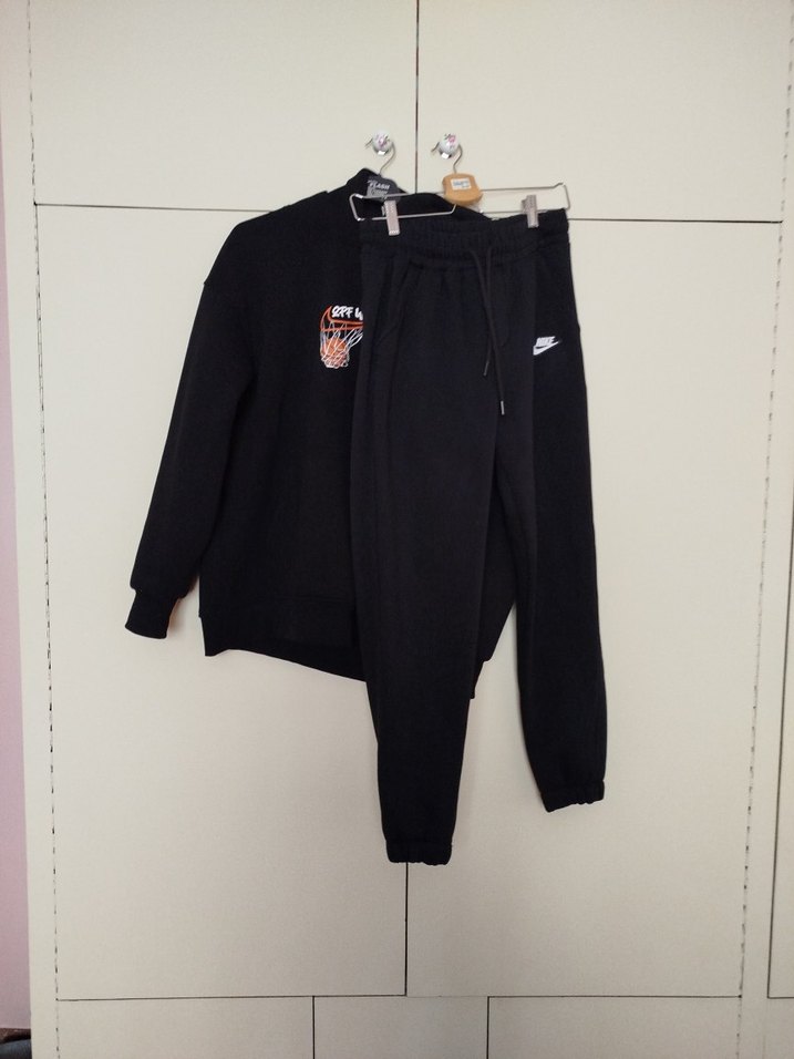 Bu siyah erkek eşofman takımı, oversize kesim, bisiklet yaka ve uzun kollu,kapüşonlu, yumuşak fleece kumaştan üretilmiştir. Desensiz, rahat ve sportif şıklık sunar.teknparca olarak almak isteyen olursa sayfamda tek olarak ta ürünlerin görseli mevcuttur, şimdiden hayırlı olsun