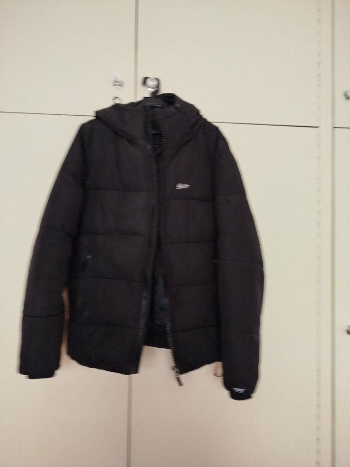 Fermuarlı, yüksek yakalı ve uzun kollu siyah Erkek şişme kışlık mont, Yumuşak ve sıcak kumaştan, minimal ve desensiz tasarıma sahip,çok iyi durumda kusursuz,iki koltuk arası;54/boy;73 cm/kol boyu;83 cm dir,kapüşonlu mont alıcısına şimdiden hayırlı olsun
