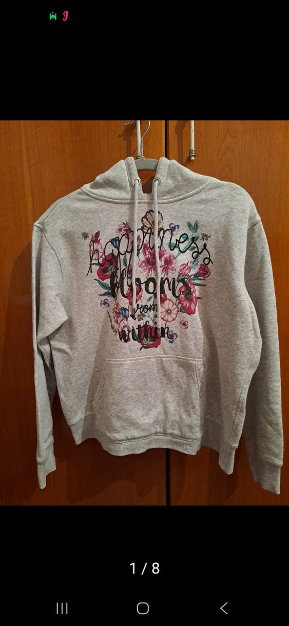 Kadınlar için kapüşonlu, uzun kollu ve fermuarlı sweatshirt. Yumuşak pamuktan, bol kesim ve önünde çiçek desenli baskı bulunur. ürün çok temiz kullanılmıştır yırtık Sökük ya da herhangi bir deforme bulunmamaktadır hiçbir kusuru yoktur iki kol arası 54 cm boy 53 cm'dir